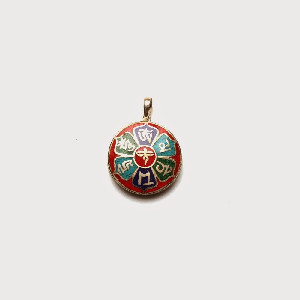 Colgante de Coral, Turquesa, Malaquita y Lapis Lazuli de Plata AG 925 con Motivo Om. Hecho en Nepal.