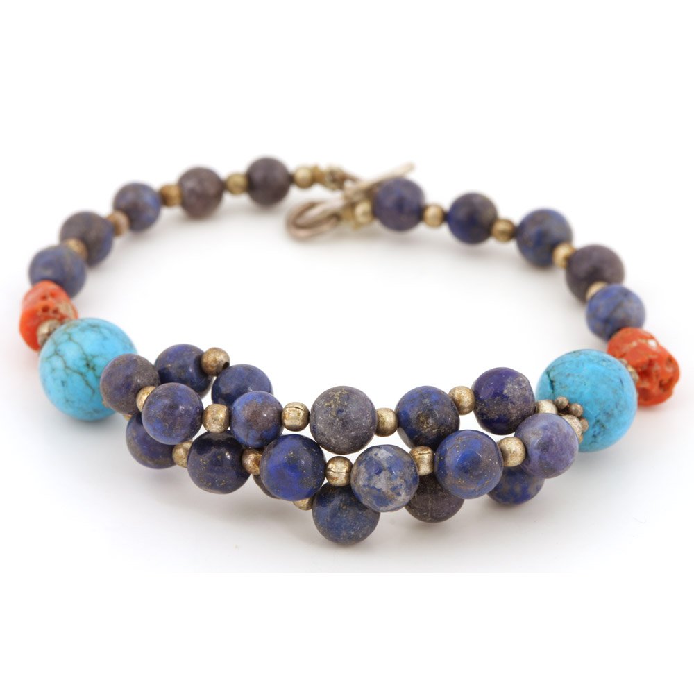 Pulsera de Piedras Naturales de Plata AG 925 con Lapis Lazuli, Turquesa y Coral.